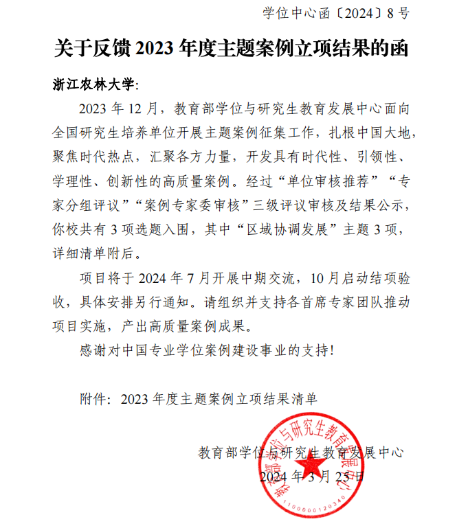 近日,教育部學位與研究生教育發展中心公布2023年主題案例征集立項結果。我校申報的3項“區域協調發展”主題案例獲批立項。