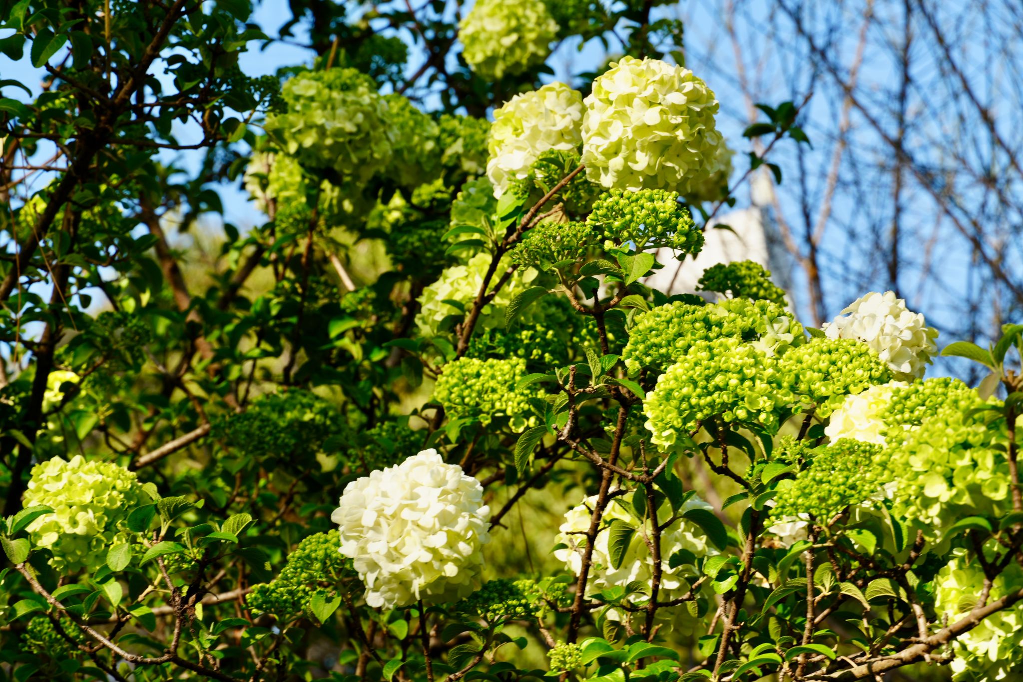 粉白的櫻花 火紅的郁金香 淡雅的繡球競相綻放