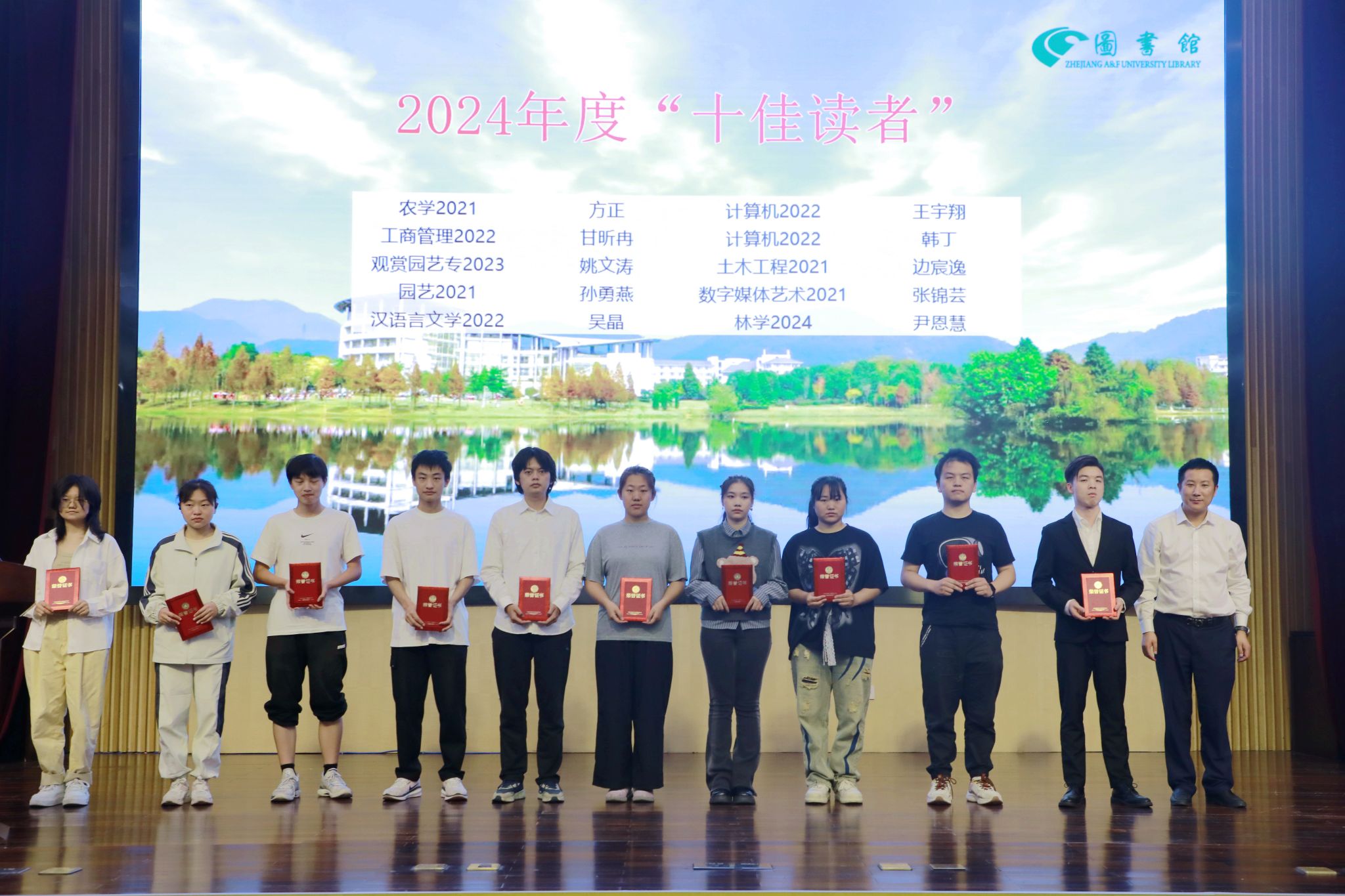 開幕式現(xiàn)場舉行了西泠印社拍賣有限公司的圖書捐贈(zèng)儀式,表彰了2024年度“十佳讀者”和“優(yōu)秀學(xué)生館員”,表演了沉浸式情景朗誦《錢氏家訓(xùn)》。