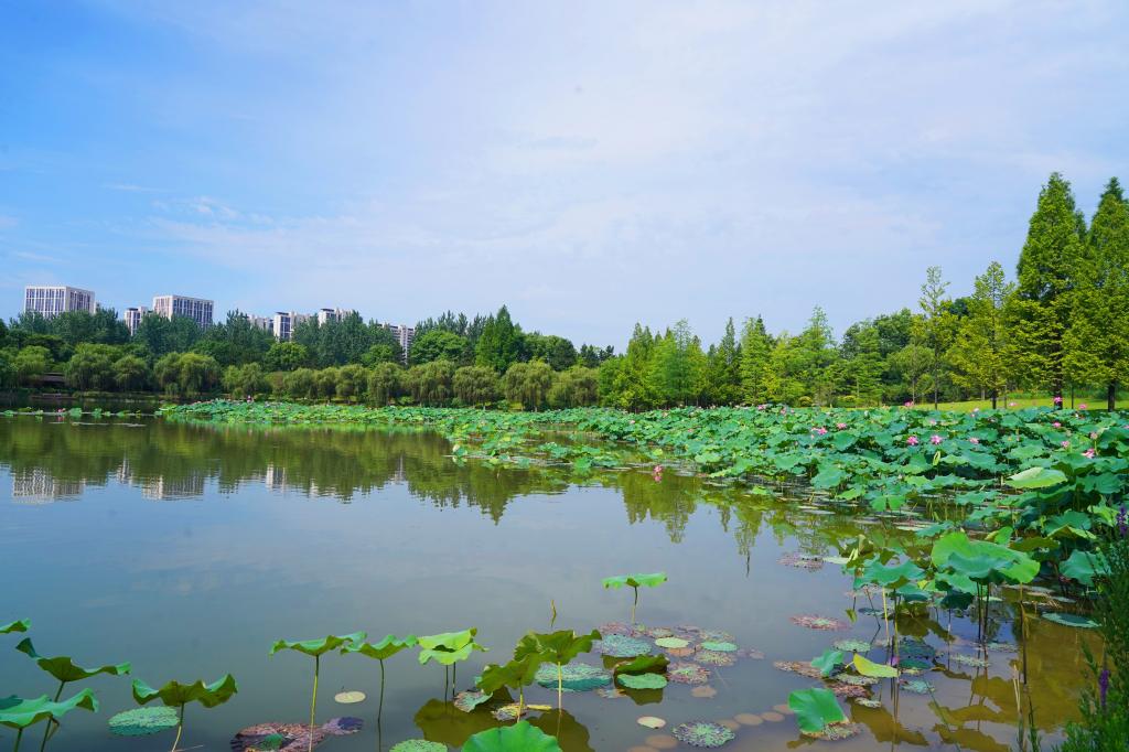 藍天白云下又接滿池疊翠
