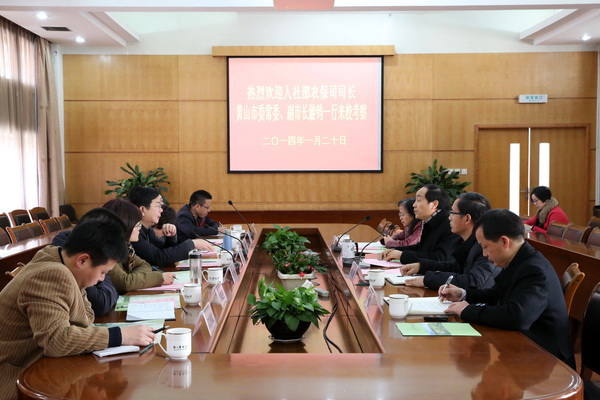 浙農林大新聞網訊 1月20日下午,人社部農保司司長、黃山市委常委、副市長游鈞一行7人來校考察。校長周國模接待了游鈞一行,并與客人進行了座談。