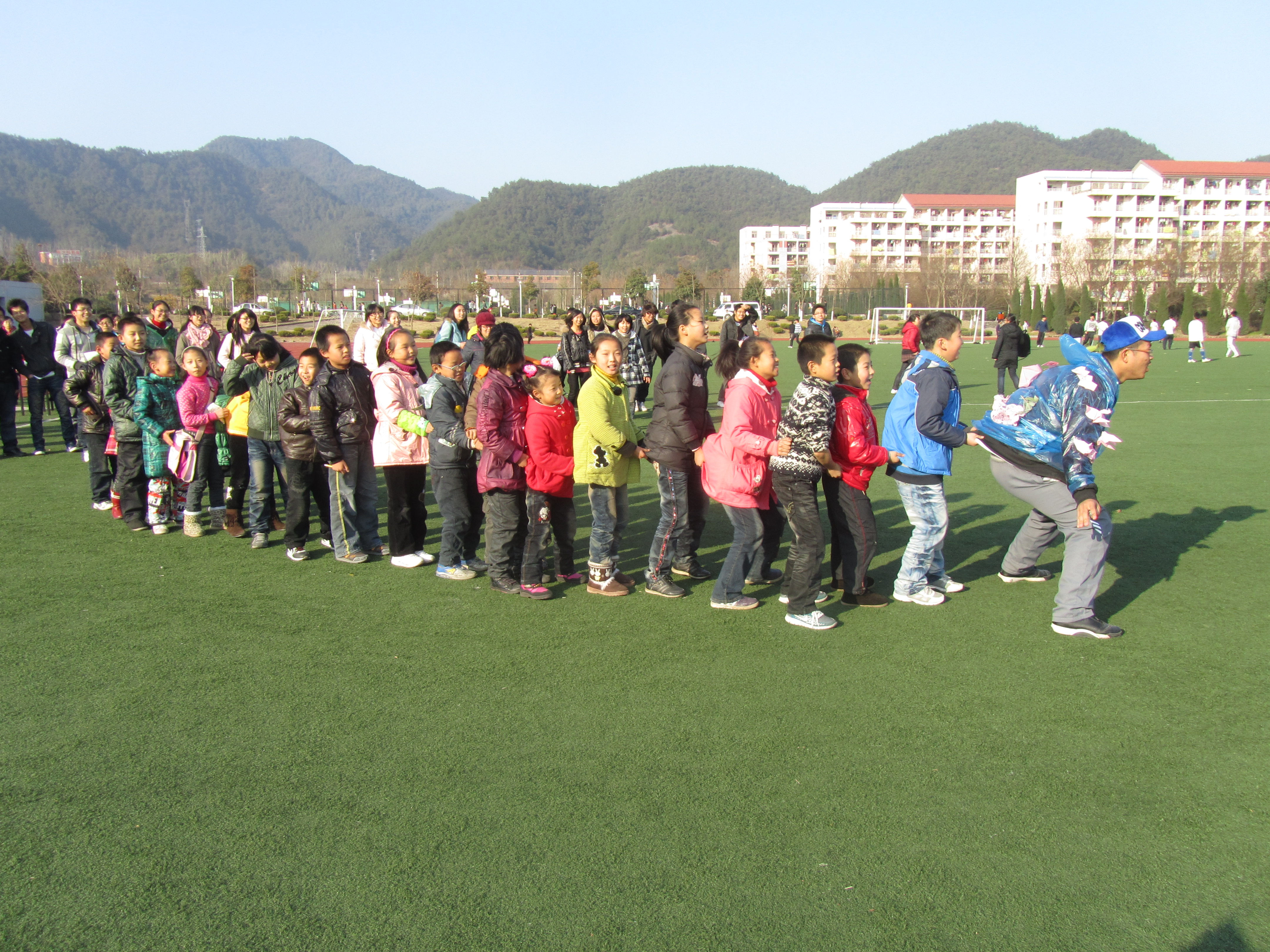 冬日的陽光灑滿了東湖校區的操場,12月26日,一群來自西林和附小的小朋友們與志愿者齊聚于此一起游戲。知識競猜、折紙飛機比賽,給自己的小隊標志涂色……志愿者們設計了一個又一個充滿童趣的小游戲,希望通過這些小游戲讓農民工子女度過一個充實而有意義的假期。