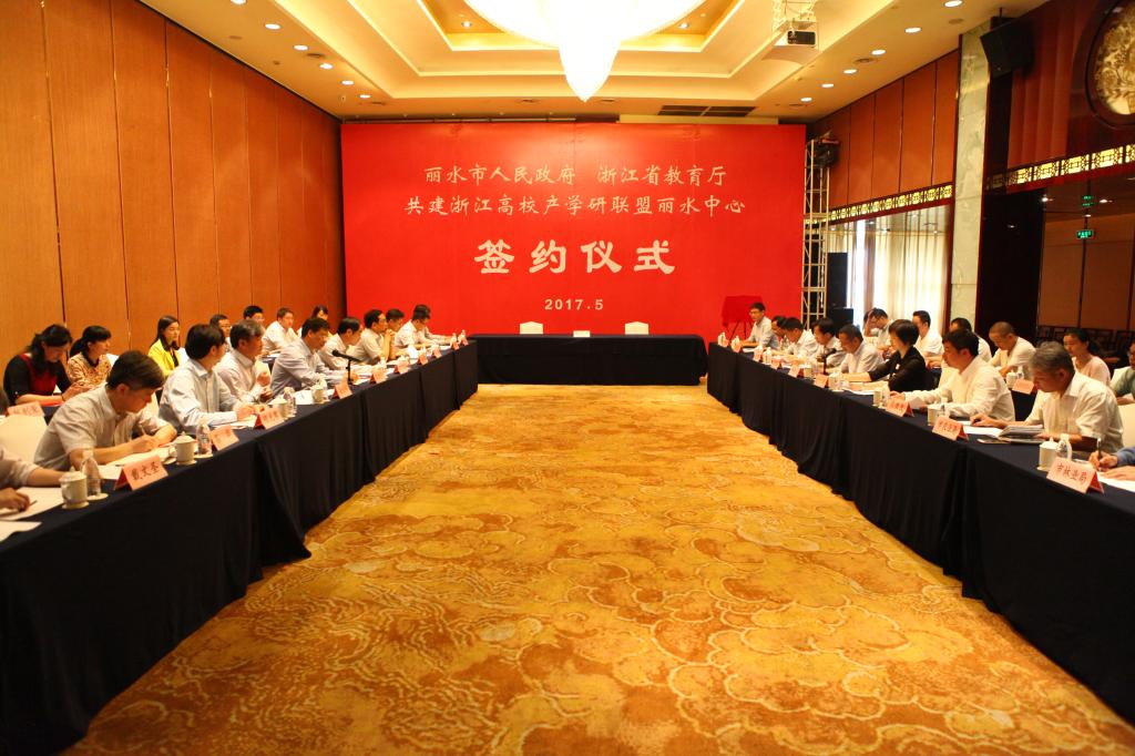 5月11日,省教育廳、麗水市共建浙江高校產學研聯盟麗水中心簽約儀式在麗水舉行。省委教育工委副書記、省教育廳副廳長陳根芳,麗水市副市長盧彩柳出席簽約儀式。該中心由我校牽頭組建,校黨委書記周國模出席并講話。寧波大學、浙江理工大學、杭州師范大學、浙江中醫藥大學、麗水學院等高校負責人參加儀式。
