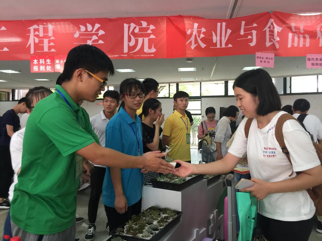 每一個學院都為新生們準備最好的入學禮物:工程學院準備了刨切微薄竹制作的明信片,還專為新生設置了“時光慢遞”;農業與食品科學學院給新生們準備了由高年級學長精心培育的多肉植物;文化學院給舟車勞頓的新生及其家長們奉上了第一杯茶;信息工程學院精心打造了富有互聯網特色的照片墻;林生院自制了竹制書簽,外國語學院為新生們量身定制了護照……