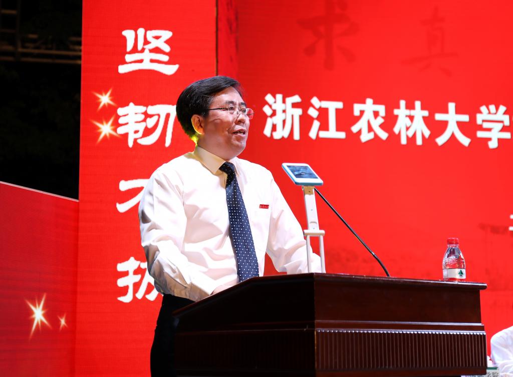 校長應義斌代表全校師生員工對正式加盟的新“浙農林人”表示歡迎,并作了題為“逐夢青春正少年”的講話,與大家分享了對實現夢想必需具備的三種特質——自信、行動、堅韌的認識。
