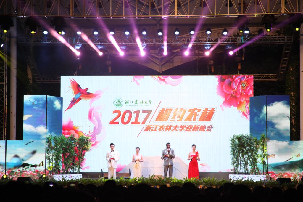 典禮結束后,舉行了迎新晚會,展現了我校大學生的青春風采,充滿了農林大學的人文氣息,呈現了“求真敬業”的校訓和“堅韌不拔 不斷超越”的學校精神。晚會在齊唱《浙江農林大學校歌》中結束。