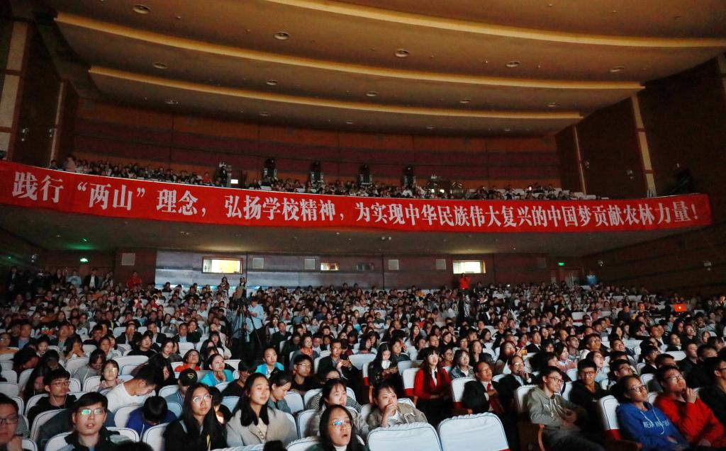 “肯干,實干,能干,這種品質(zhì)就像血液一樣流淌在我的體內(nèi),現(xiàn)在無法改變,我希望你們這一代農(nóng)林人永不言棄,發(fā)揚光大;堅守‘綠水青山就是金山銀山’,一定會大有作為!”原創(chuàng)校慶劇《大地戀歌》里,科技特派員“孫大林”的一句話,引起了全場師生的共鳴,呈現(xiàn)的是農(nóng)林人心底最純粹、最質(zhì)樸的執(zhí)念。