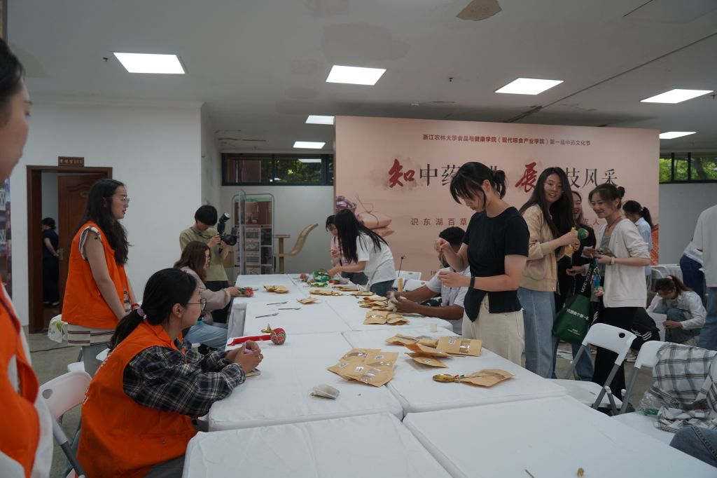 據介紹,浙江農林大學首屆中藥文化節結合學科專業特色、手工制作體驗、中藥文化傳承等主題,設置體驗區、品鑒區和展示區等版塊,包括“學中藥知識 品藥香底蘊”“制中藥產品 悟本草文化”“辨中藥國粹 承國醫精髓”“知中藥產業 展科技風采”等四個篇章,具體活動涉及標本展覽、文化體驗、杏林問道、特色展示等多個方面豐富多彩的活動,吸引了1000多名師生在活動中切身體驗、感受中藥文化的魅力。