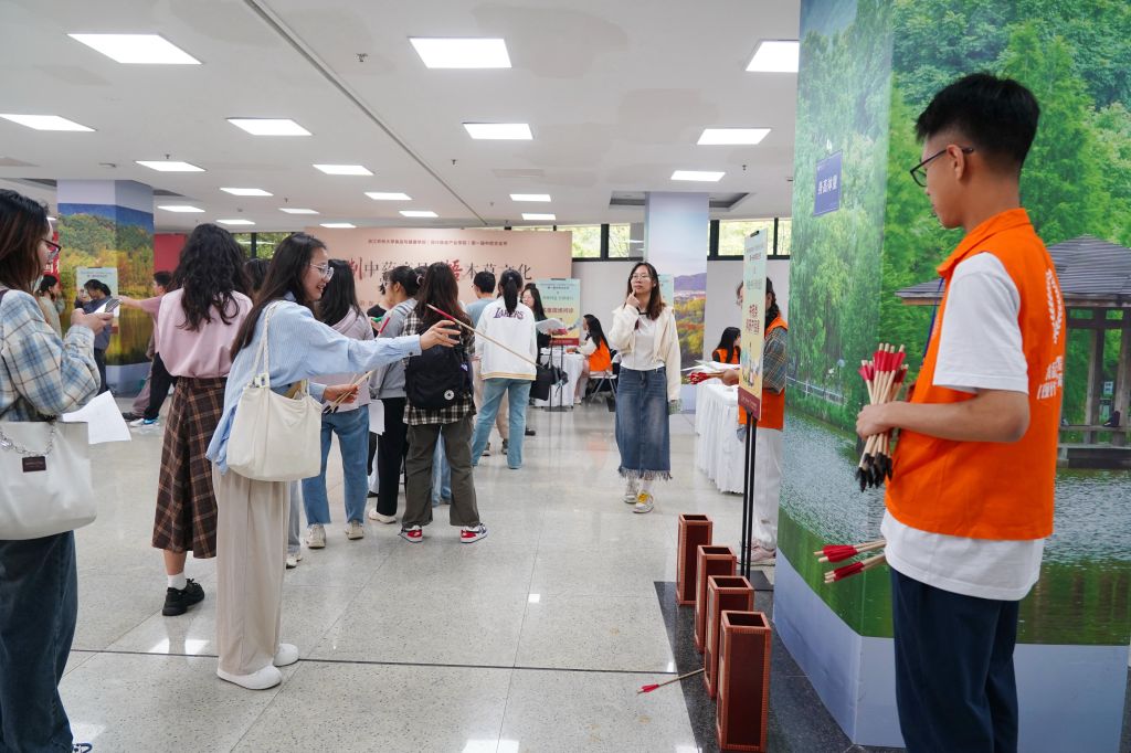 從6月6日開始,浙江農林大學食品與健康學院舉辦了該校首屆中藥文化節,通過開展以“學、制、辨、知”為主線,集知識性、文化性、趣味性和體驗性為一體的系列活動,讓學生在參與藥膳品嘗、拓印中草藥、把脈問診、投壺游戲等各種民俗項目,體驗中藥文化的獨特魅力,迎接端午佳節的到來。