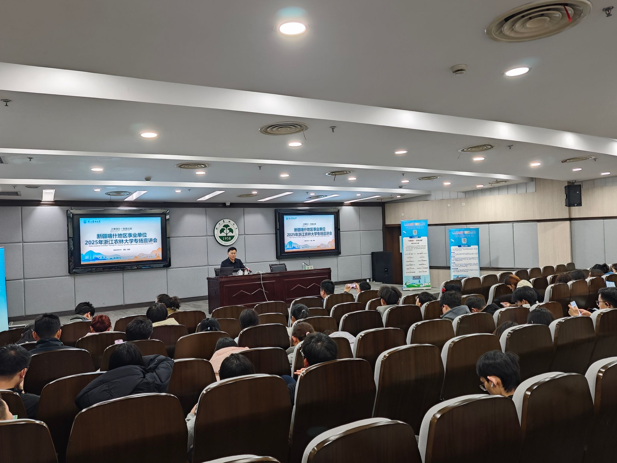 3月14日,“才聚喀什·智惠絲路”新疆喀什地區事業單位2025年浙江農林大學專場宣講會在圖書館第二報告廳舉行,研工部相關負責人出席活動。宣講會共吸引了全校來自不同專業的100余名本碩畢業生熱情參與。
