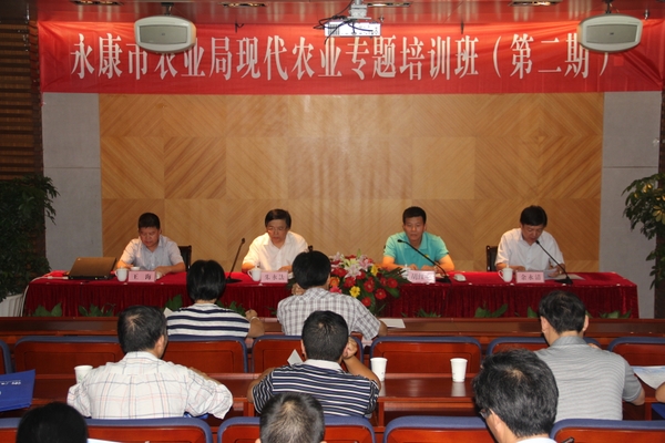 浙農林大新聞網訊 7月3日下午,永康市農業局現代農業第二期專題培訓班在我校東湖校區舉行,來自永康市農業局中層管理干部、首席專家及機關工作人員30余人參加了培訓。永康市農業局副局長胡紅心、副局長王海,繼續教育學院院長朱永法出席開班式。