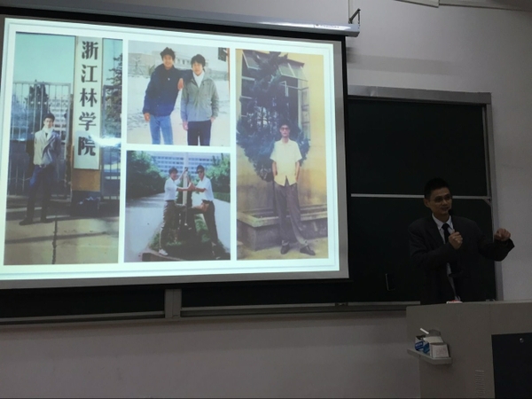 報告會上,沈新光通過展示大學時期的個人照片和學校舊照把同學們帶到了曾經年代,用親切幽默的話語講述了自己的大學歲月和從商經歷,讓同學們感同身受體會深刻。他鼓勵同學們一定要敢于做夢、打造能力奮力實現夢想。