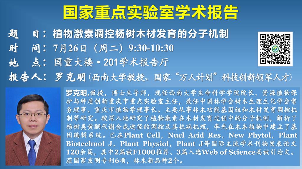 講座預告:植物激素調控楊樹木材發育的分子機制