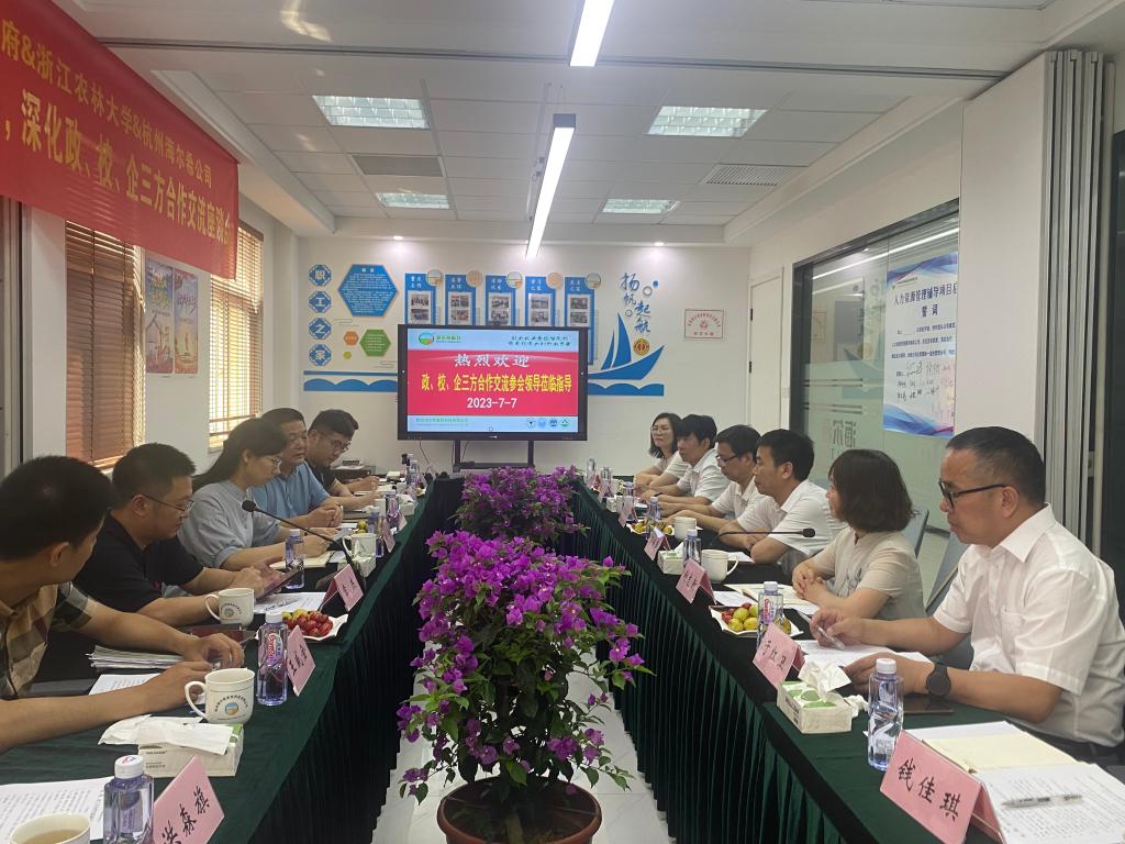 7月7日,化材學院院長孫慶豐、黨委書記謝志新帶隊赴杭州海爾希畜牧科技有限公司開展“踐行‘八八戰略’,深化政、校、企三方合作懇談會”主題活動。戴村鎮組織委員袁鉉、杭州海爾希公司董事長樓偉杰、工會主席王毅及三方相關部門負責人參加座談會。會議由戴村鎮副鎮長章杰主持。