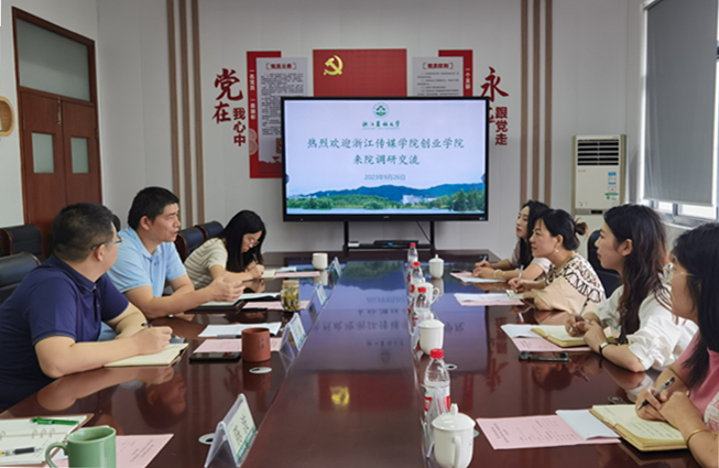 秦華對(duì)傅梅爛一行來(lái)院調(diào)研表示歡迎,并介紹了集賢學(xué)院的基本情況和近年來(lái)學(xué)校在推進(jìn)大學(xué)生創(chuàng)新創(chuàng)業(yè)教育的改革舉措及取得的成績(jī)。創(chuàng)業(yè)實(shí)訓(xùn)中心負(fù)責(zé)人匯報(bào)了集賢學(xué)院創(chuàng)新創(chuàng)業(yè)教育基本情況和特色做法。傅梅爛介紹了浙江傳媒學(xué)院創(chuàng)業(yè)學(xué)院的基本情況和此次調(diào)研的背景與目的,回顧了兩校之間在創(chuàng)新創(chuàng)業(yè)教育方面的交流情況,希望雙方以此次調(diào)研交流為契機(jī),加強(qiáng)交流合作,共同發(fā)展。