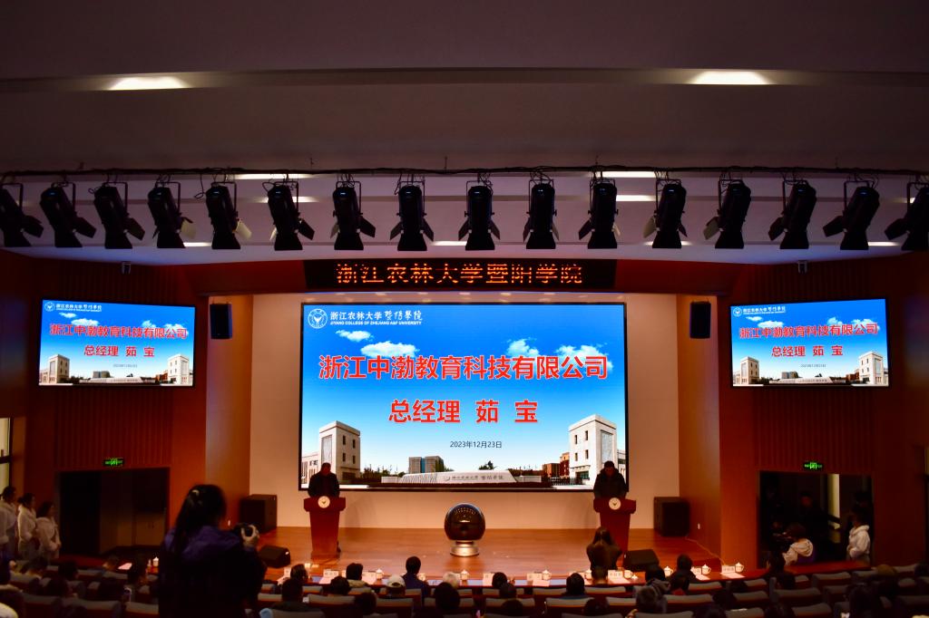 儀式上,浙江中渤教育科技有限公司向?qū)W院捐贈了總價值108萬元的教學(xué)資源,并在今后四年每年捐贈現(xiàn)金5-15萬元。洪昀為浙江中渤教育科技有限公司頒發(fā)捐贈證書。