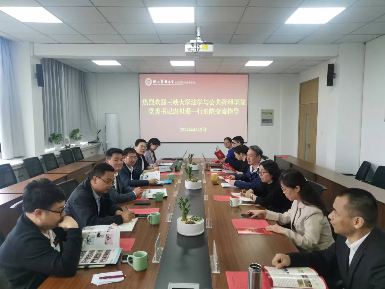4月3日上午,三峽大學(xué)法學(xué)與公共管理學(xué)院黨委書記唐祖愛一行,來文法學(xué)院調(diào)研交流。文法學(xué)院黨委書記朱紅東等,以及相關(guān)學(xué)科部門代表參加交流。