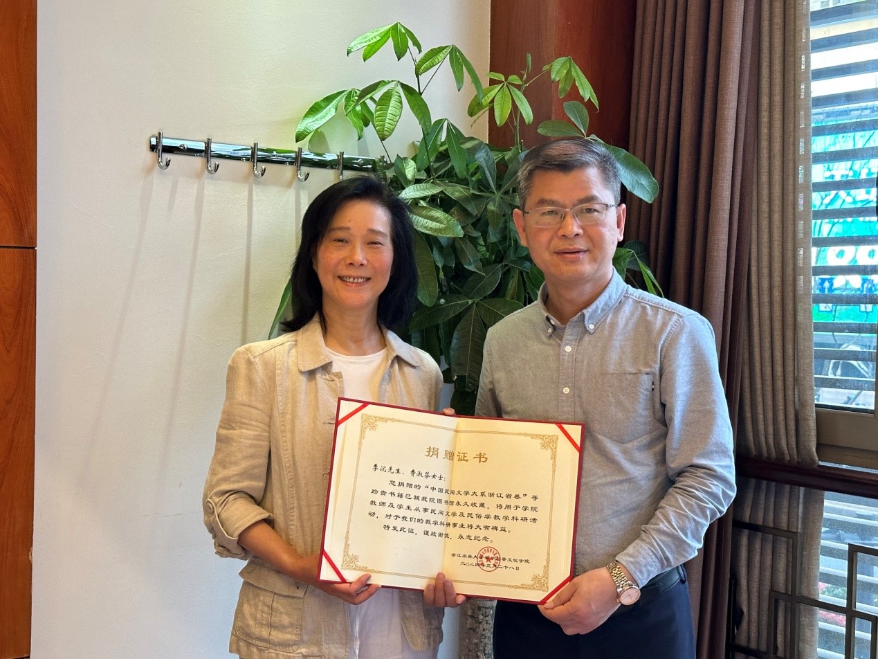 日前,原浙江省文聯(lián)民間文藝家協(xié)會常務(wù)副主席兼秘書長、浙江省民間文學(xué)集成辦公室主任季沉、原浙江省作家協(xié)會副主席費(fèi)淑芬伉儷將一套完整的“中國民間文學(xué)集成大系浙江卷”等珍貴圖書資料共計461本,其中包含浙江各縣故事卷、諺語卷、歌謠卷,民間文學(xué)集成卷,民俗學(xué)叢書,杭報叢書以及部分人物傳記、文集、小說等無償捐贈給茶學(xué)院。