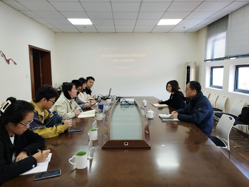 4月9日,杭州綠色志愿服務(wù)總隊(duì)在杭高校綠色聯(lián)盟負(fù)責(zé)人曹亮、周琴一行來(lái)校團(tuán)委調(diào)研交流。校團(tuán)委書記魏玲玲,校團(tuán)委相關(guān)人員,校生態(tài)類社團(tuán)、學(xué)生組織代表等參加交流。