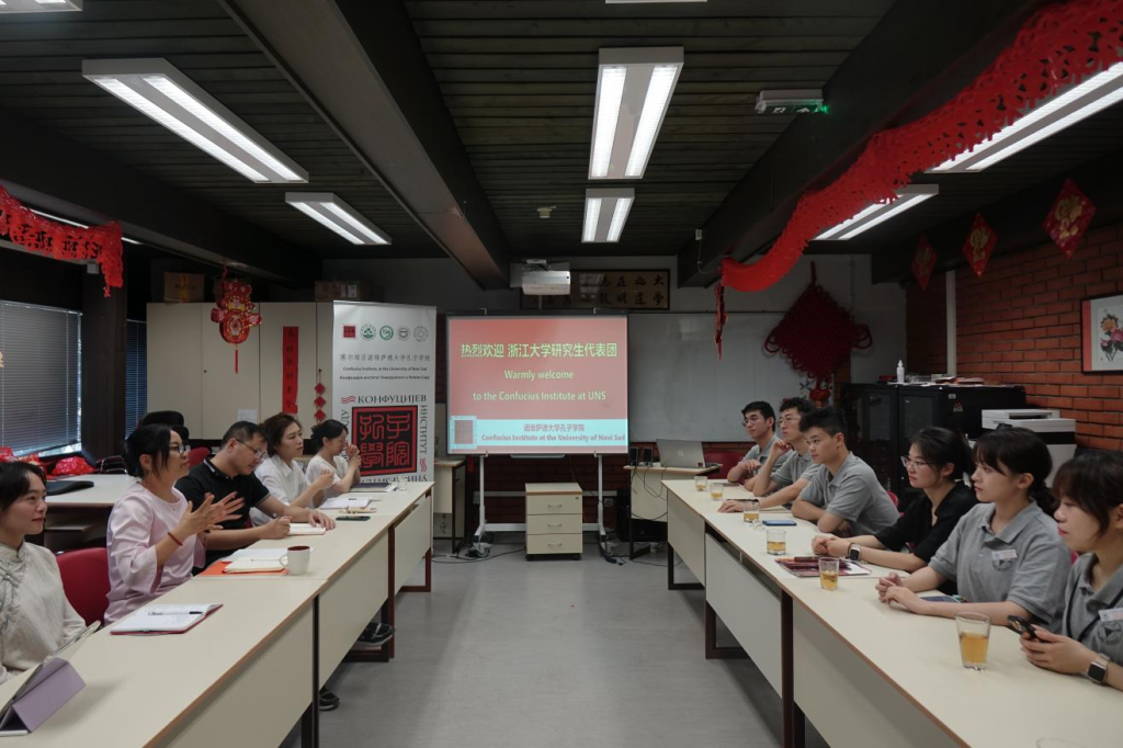 當地時間8月29日,浙江大學研究生代表團訪問諾維薩德大學孔子學院。諾大孔院中方院長陳秀及孔院教師參加座談交流。