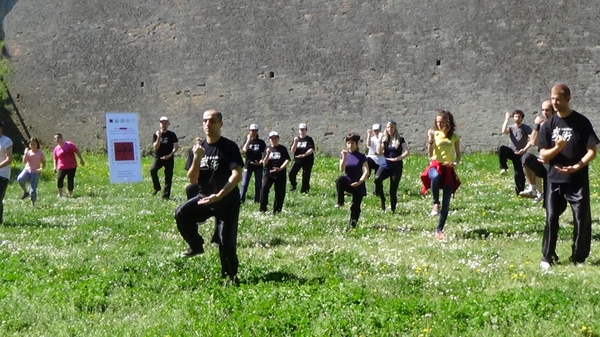 4月25日,諾大孔院與塞爾維亞“老虎”太極俱樂部合作,在諾市標志性建筑、著名旅游景點城堡山成功舉辦了共慶2015“世界太極日”中國太極推廣活動。孔院志愿者教師與30多位學生及太極俱樂部成員分別展示了陳氏太極18式、楊氏太極24式、42式等不同套路,吸引了上百位游客駐足欣賞,并有不少觀者不由自主地就加入到了學習者的行列。